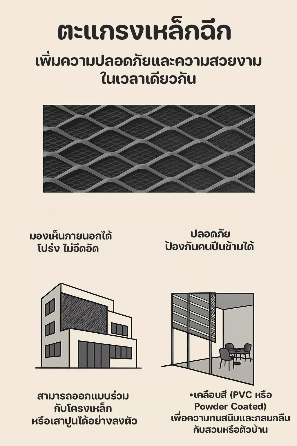 ในยุคที่การออกแบบสถาปัตยกรรมไม่ได้เน้นเพียงความสวยงาม แต่ต้องตอบโจทย์ด้านฟังก์ชัน ความยั่งยืน และการใช้งานจริง วัสดุโครงสร้างอย่าง “ตะแกรงเหล็กฉีก” (Expanded Metal) จึงกลายมาเป็นทางเลือกที่ได้รับความนิยมเพิ่มขึ้นเรื่อย ๆ ในแวดวงออกแบบอาคารยุคใหม่ ตะแกรงเหล็กฉีกไม่ใช่แค่วัสดุก่อสร้างธรรมดา แต่กลับเป็น “องค์ประกอบทางสถาปัตยกรรม” ที่สามารถผสมผสานระหว่างความงาม ความปลอดภัย และการใช้งานจริงได้อย่างลงตัว